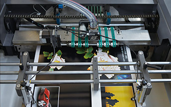 開機工作開始,噴印系統進行排氣壓墨,噴出的光油可以回收,循環使用進而減少浪費。局部上光持續進行不斷墨,工作完畢后,噴頭自動回棧。隔離灰塵和光線,有效保護噴頭。